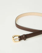 Designed to be a wardrobe staple, this classic skinny belt is made from genuine leather with a simple gold-tone buckle and subtle leather keeper. You'll wear this timeless hip belt for years to come.