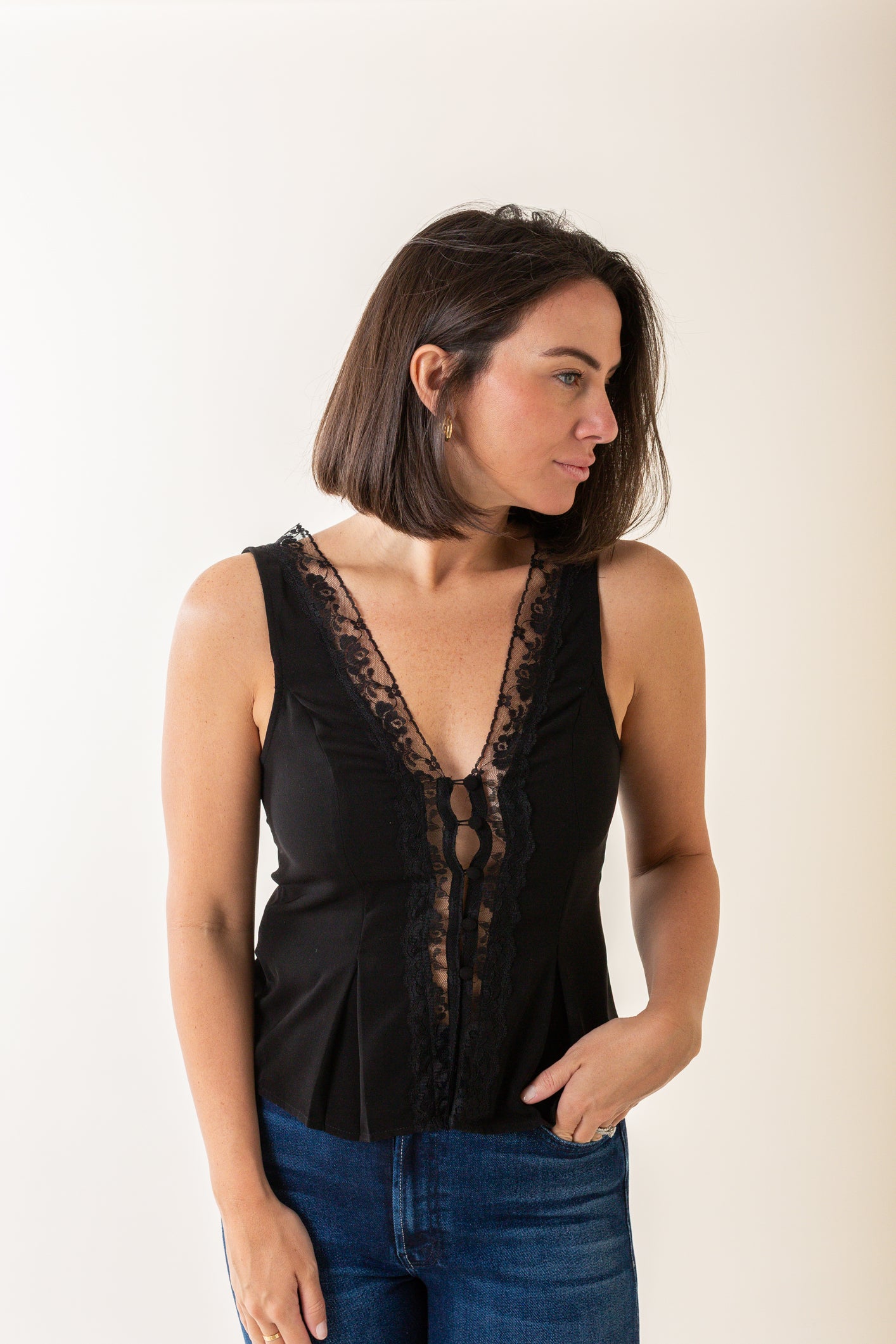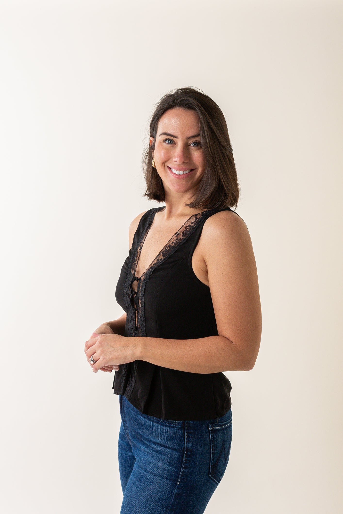 Fit: Runs small. Model is 5'5" and sized up two sizes to L.