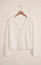 A silky rib knit gives this button-front cardigan a polished yet laid-back feel with just the right amount of stretch. Its clean v-neckline and easy fit make it a versatile layer, perfect worn open with a tank or closed as a cozy top.