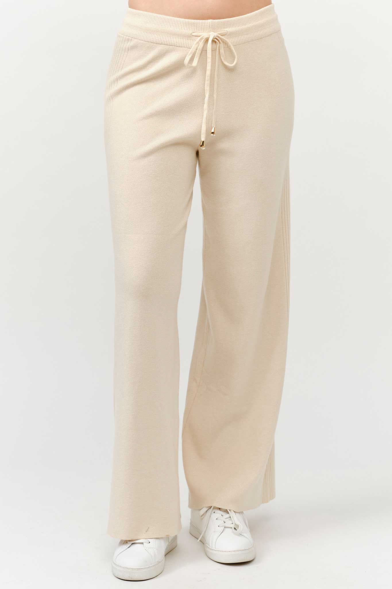 - Ribbed waistband with drawstring tie