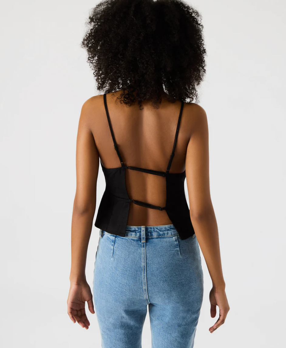 The TIEGAN top is a sleek and stylish top with adjustable straps for a perfect fit. The unique strappy back design adds a touch of elegance and sophistication to your ensemble. Expertly crafted, this top is a must-have for any fashion-forward individual.