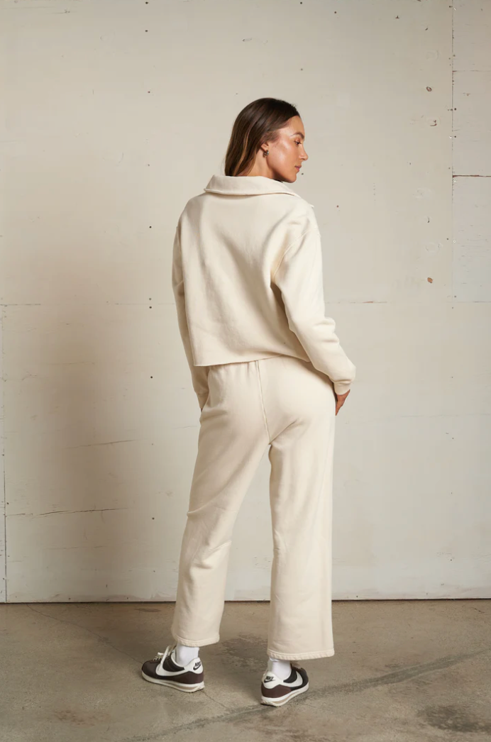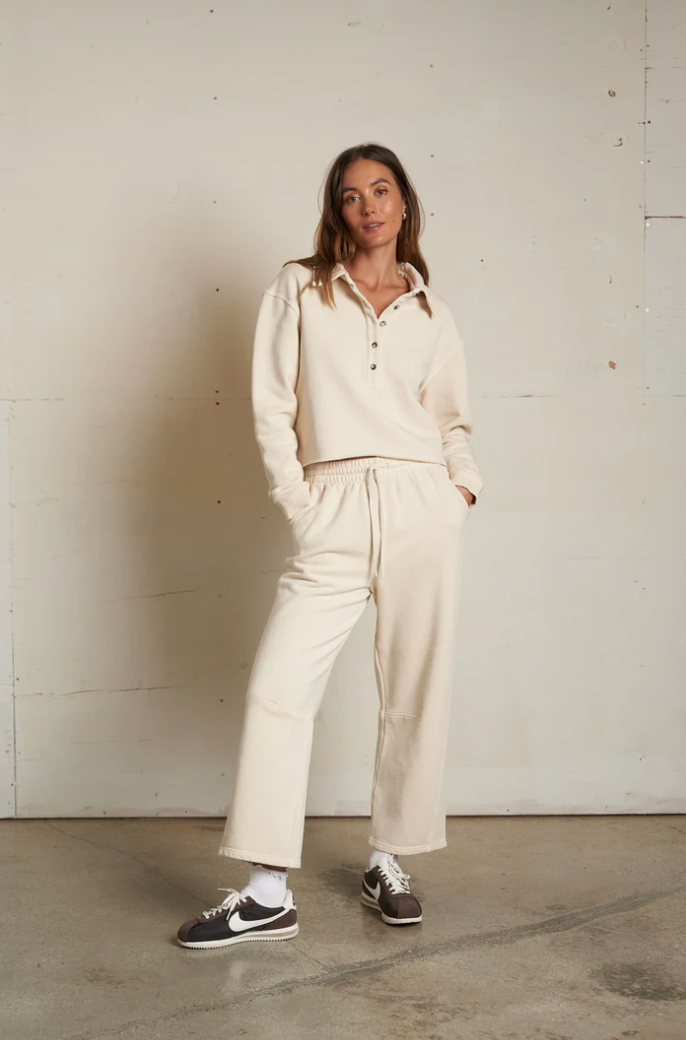why we love it: we love the vinny because it’s the perfect companion to the fallon bottom, creating a set that feels both comfortable and put-together. whether it’s school pick-ups, airport travel, or a busy day of errands, this top makes everyday dressing simple without sacrificing style. the raw hem adds just the right amount of edge to a classic fleece design.